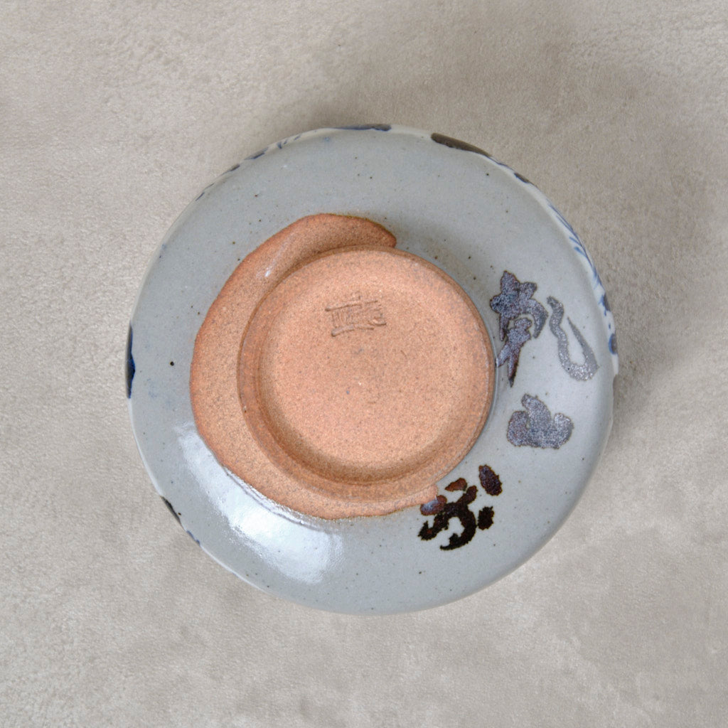 春の野に芽吹く若草を、藍の染付と鉄釉の銹絵で伸びやかに描いた一碗です。