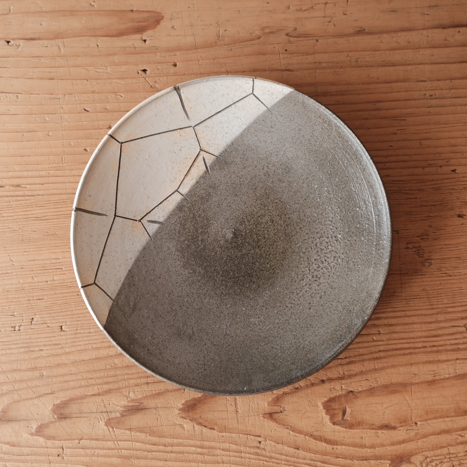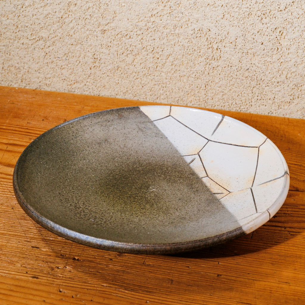 灰釉焼〆七寸皿 亀甲紋(清水焼) | 宮本 博