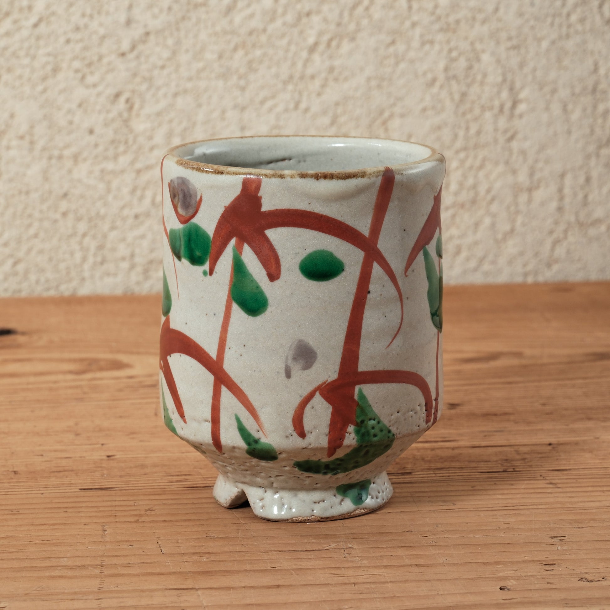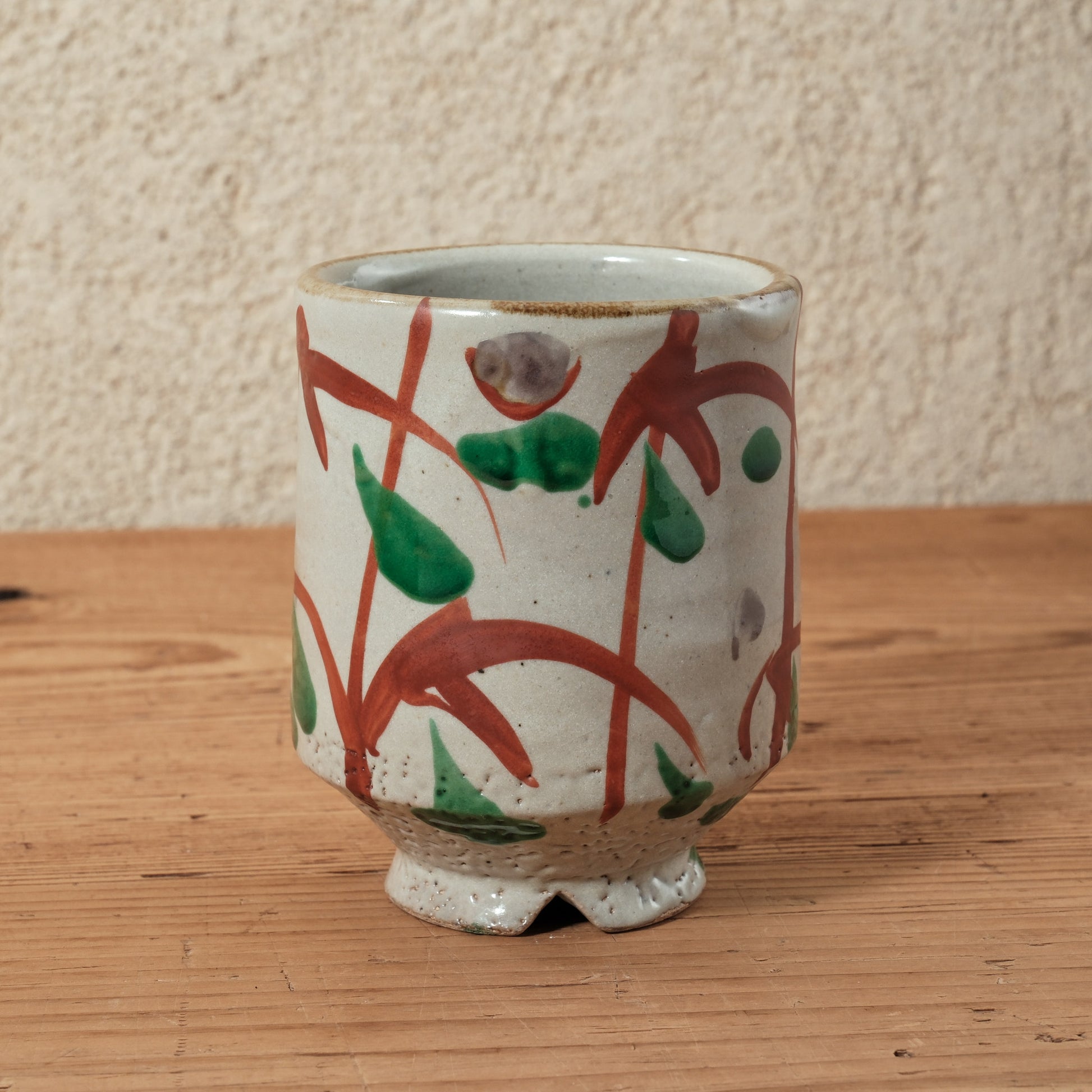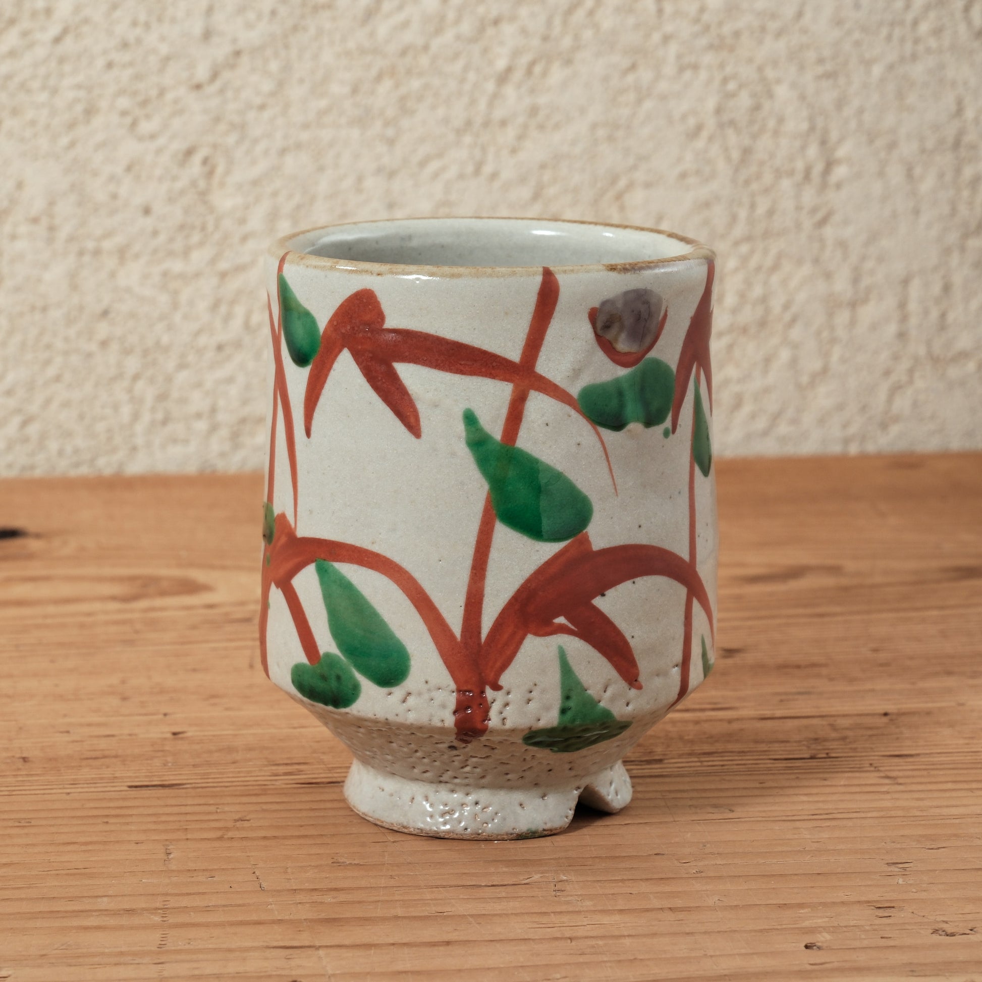 益子の陶芸家・松原直之さんによる、鉄絵と赤絵の湯呑。(1点物)