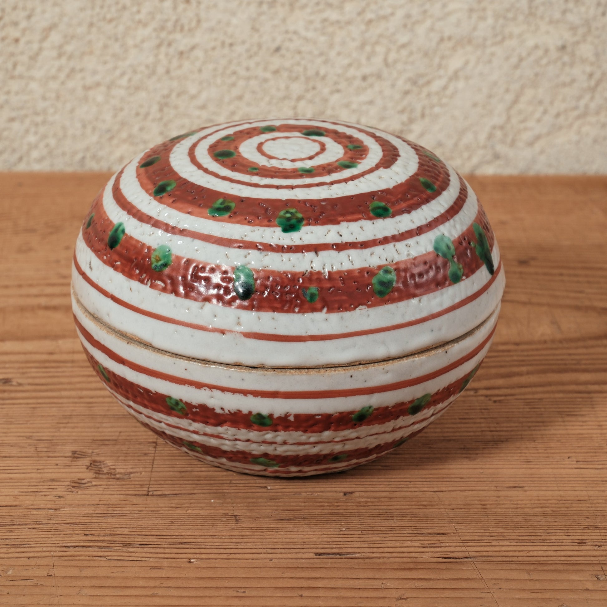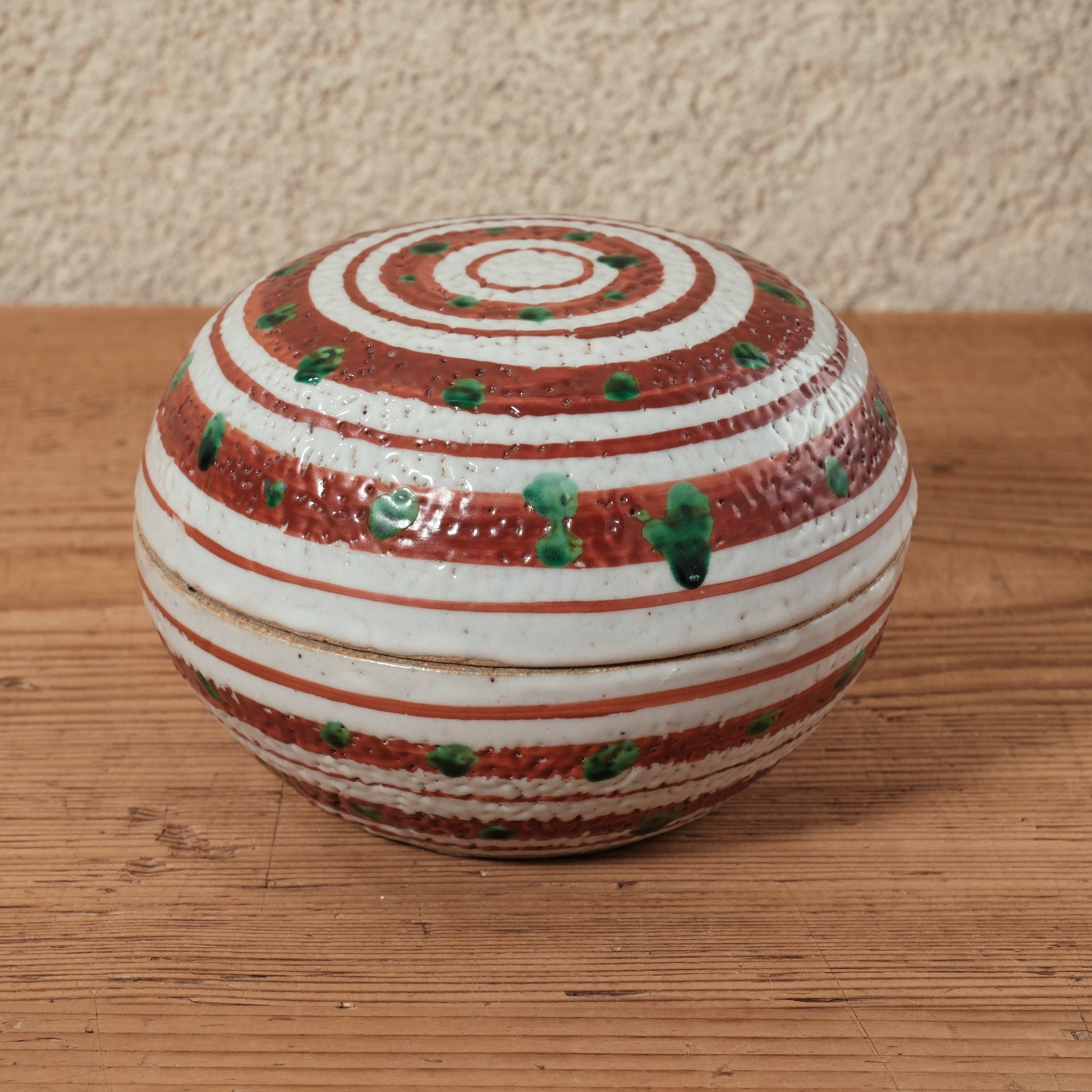 益子の陶芸家・松原直之さんによる、赤絵の蓋物。