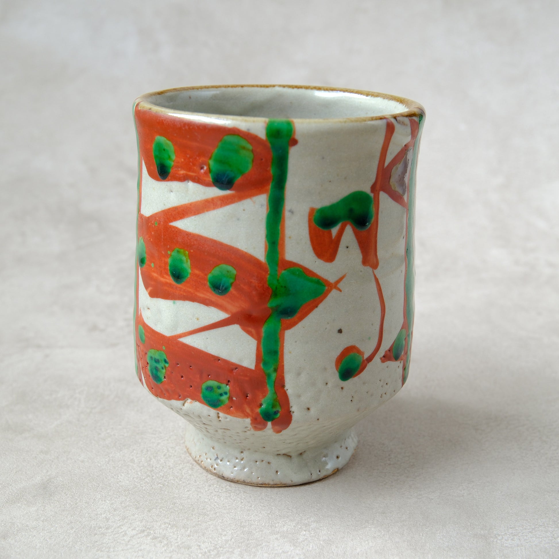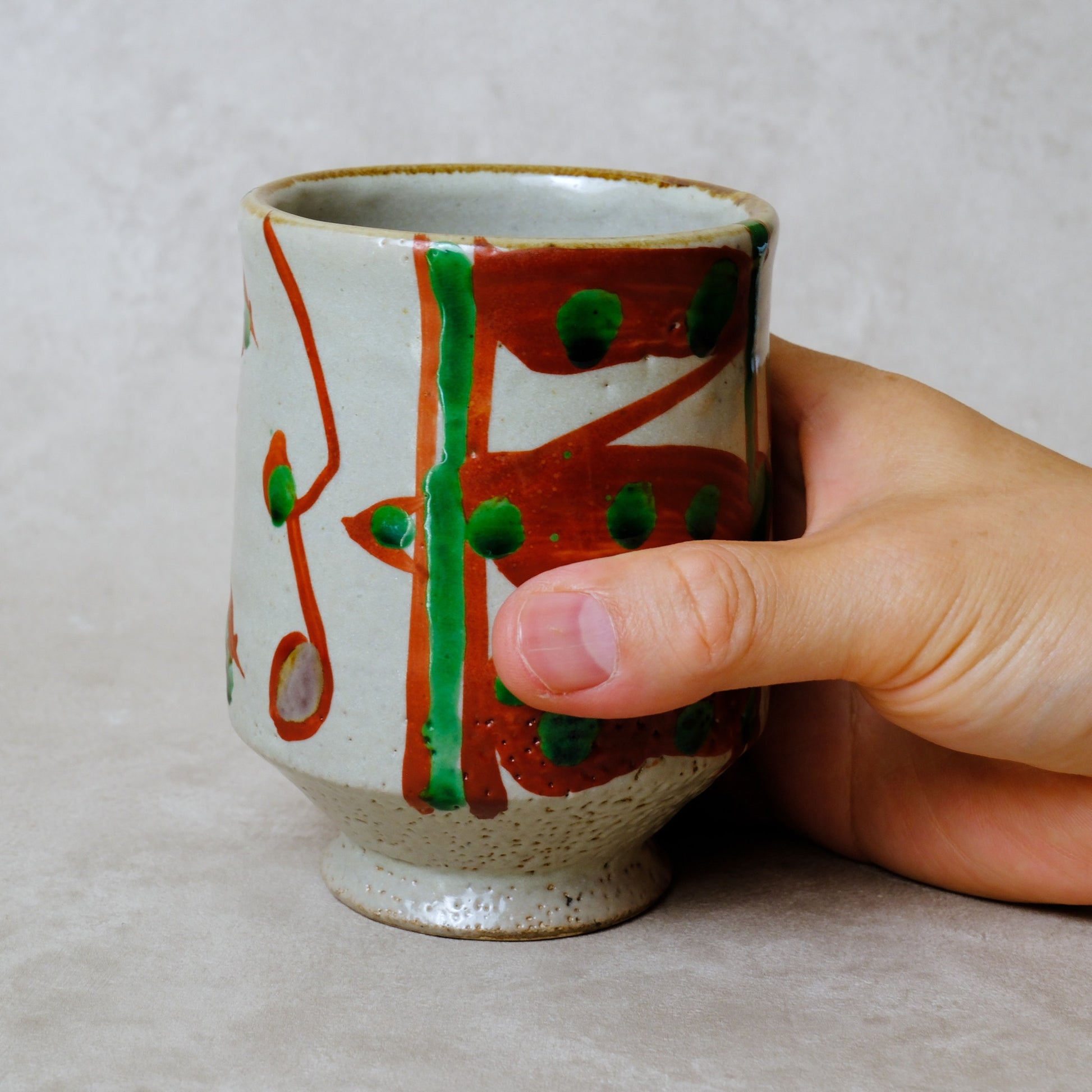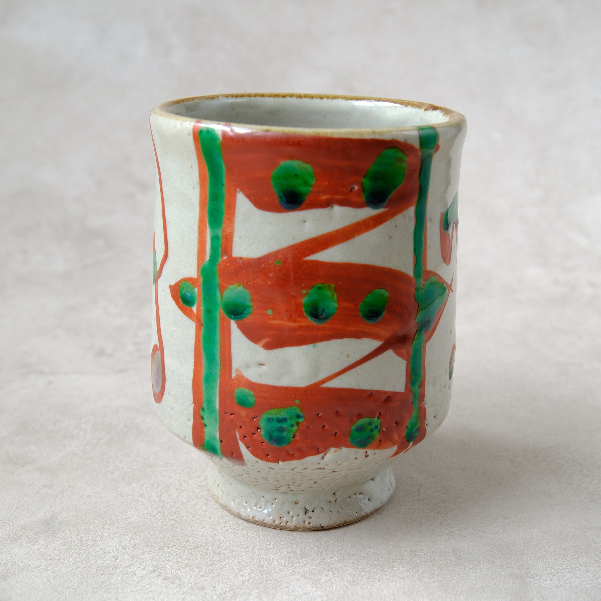 益子の陶芸家・松原直之さんによる、鉄絵と赤絵の湯呑。(1点物)