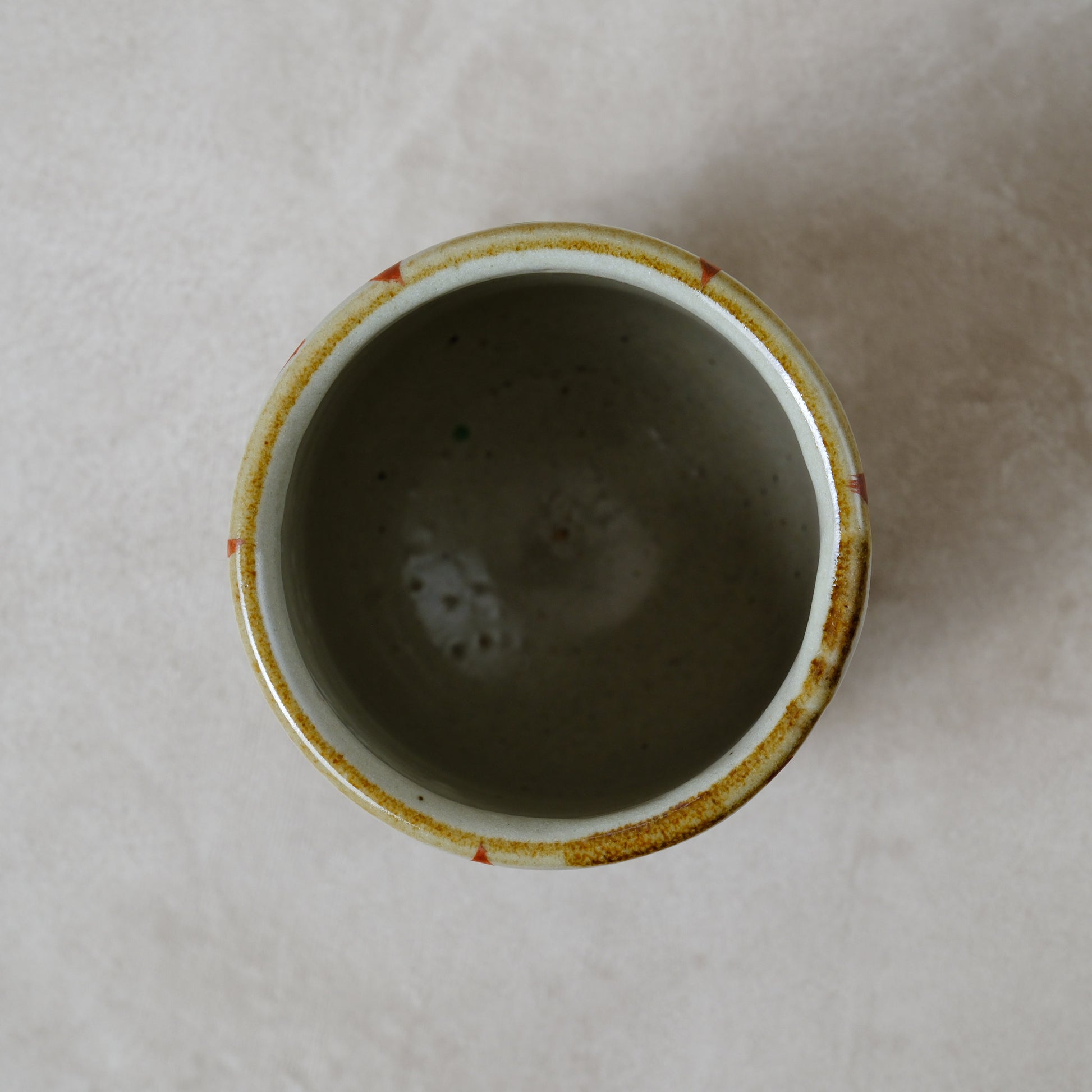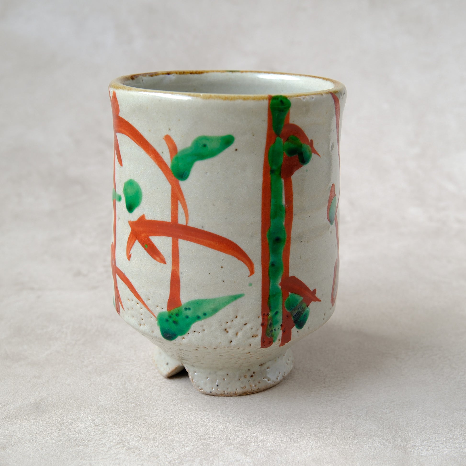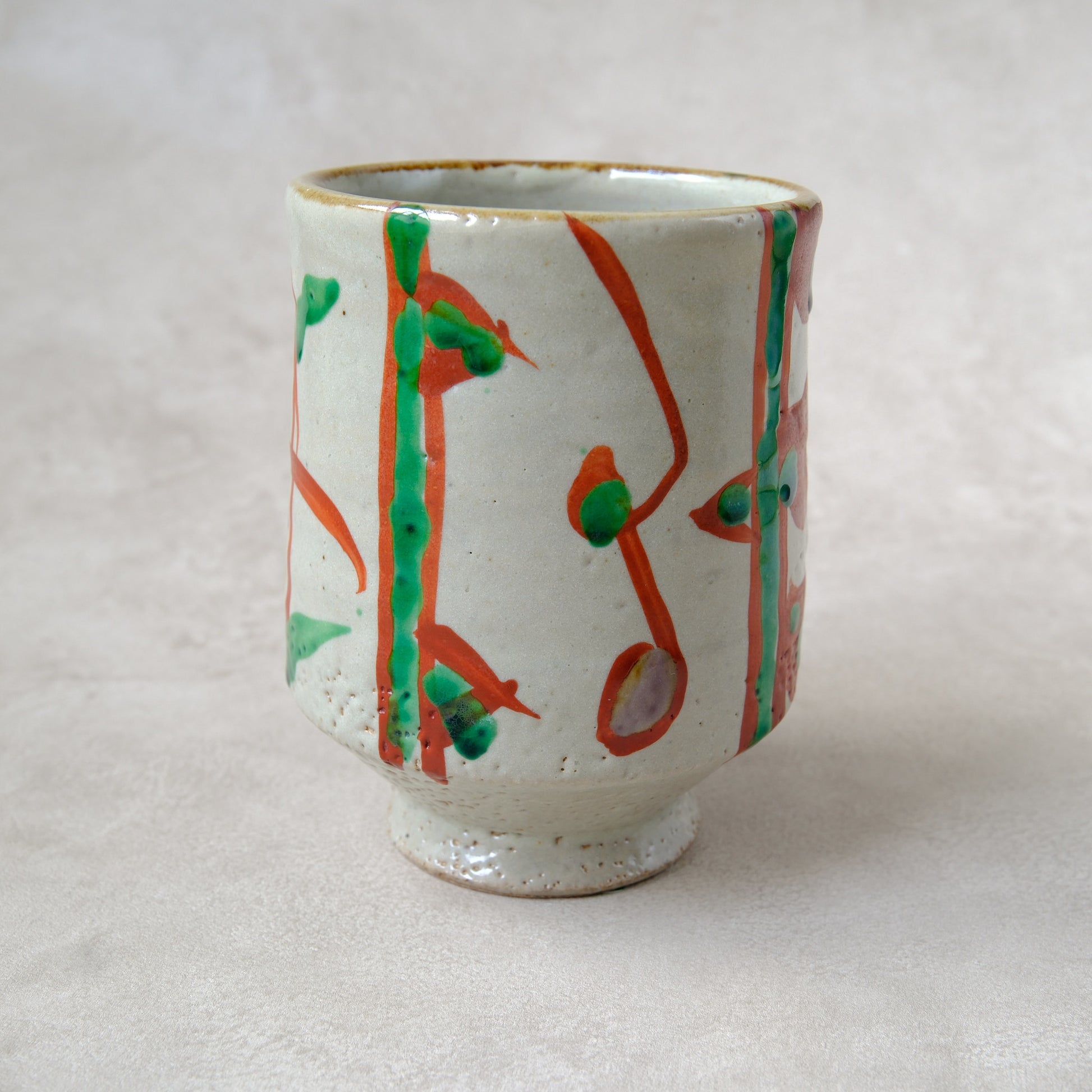益子の陶芸家・松原直之さんによる、鉄絵と赤絵の湯呑。(1点物)