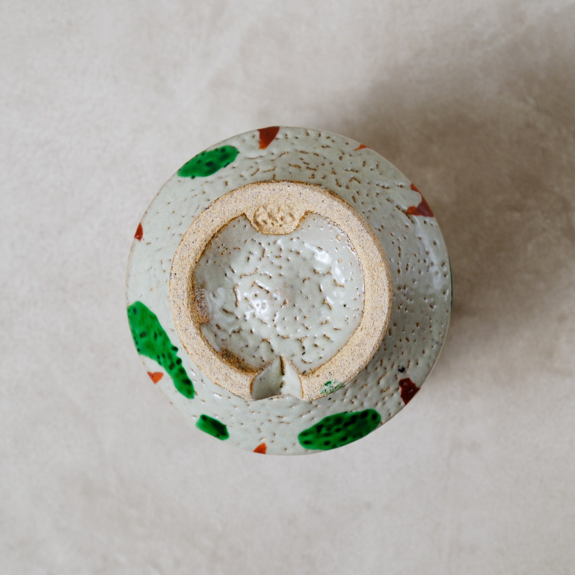 焼成後に上絵具で赤や緑などを加える装飾法。華やかさと温かみを添える。