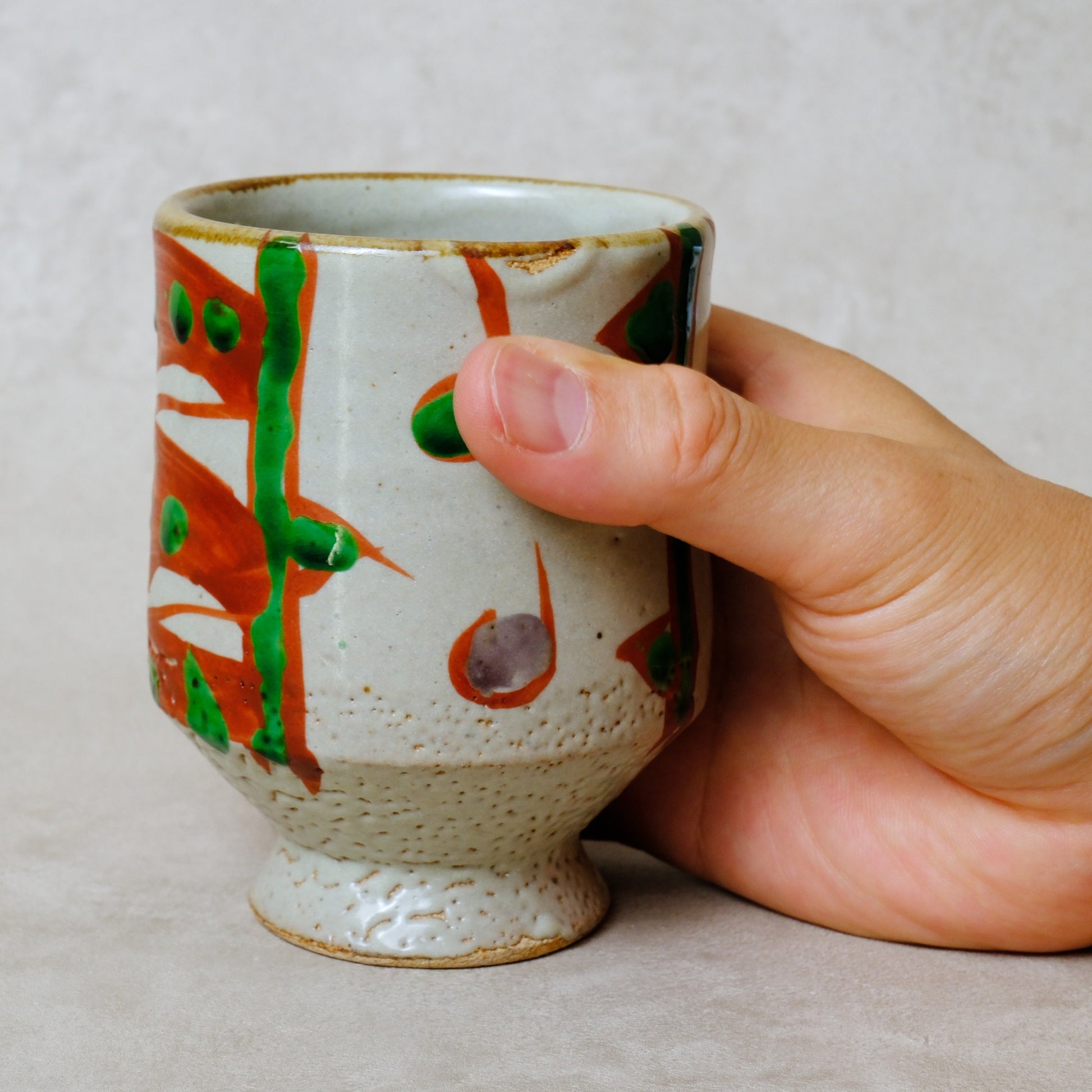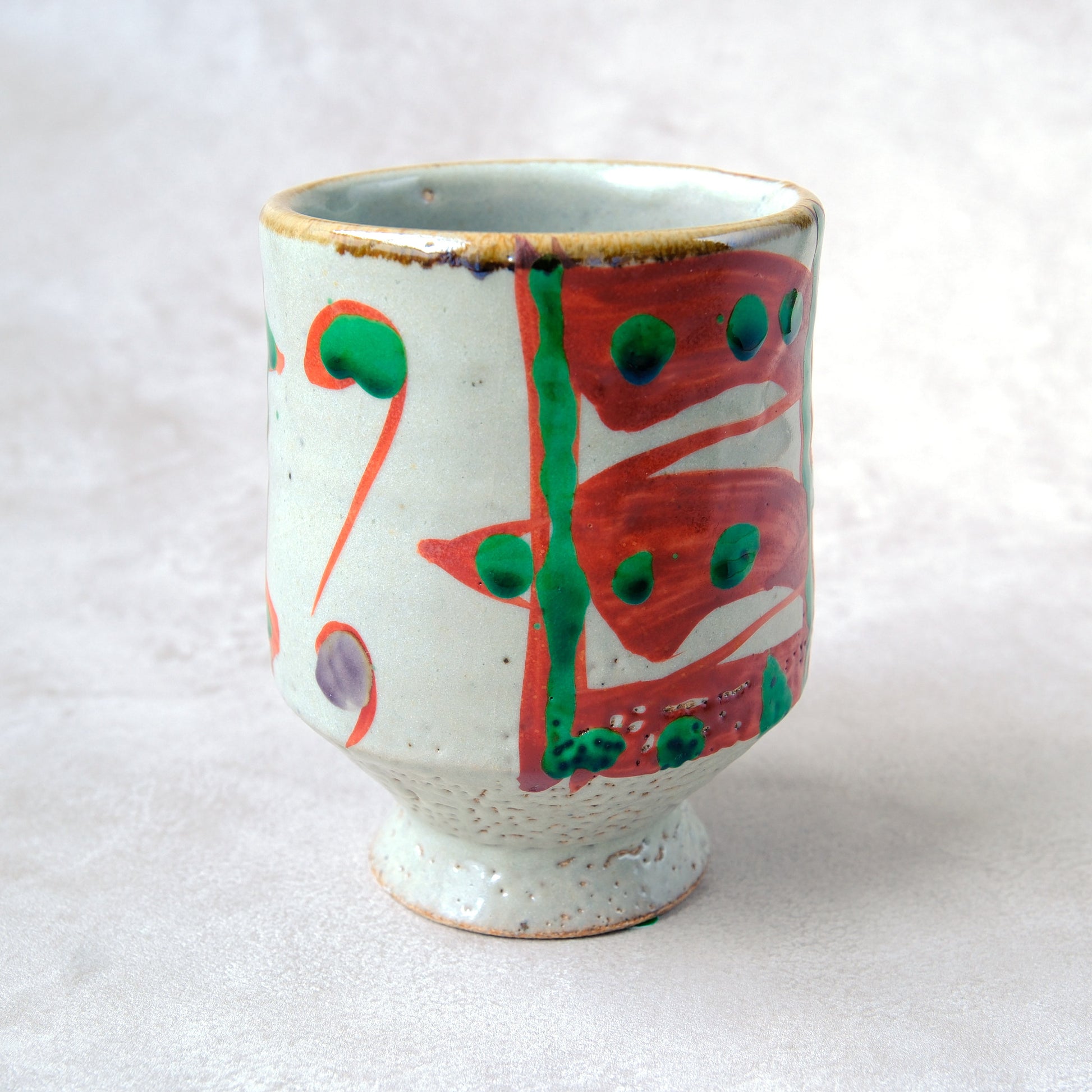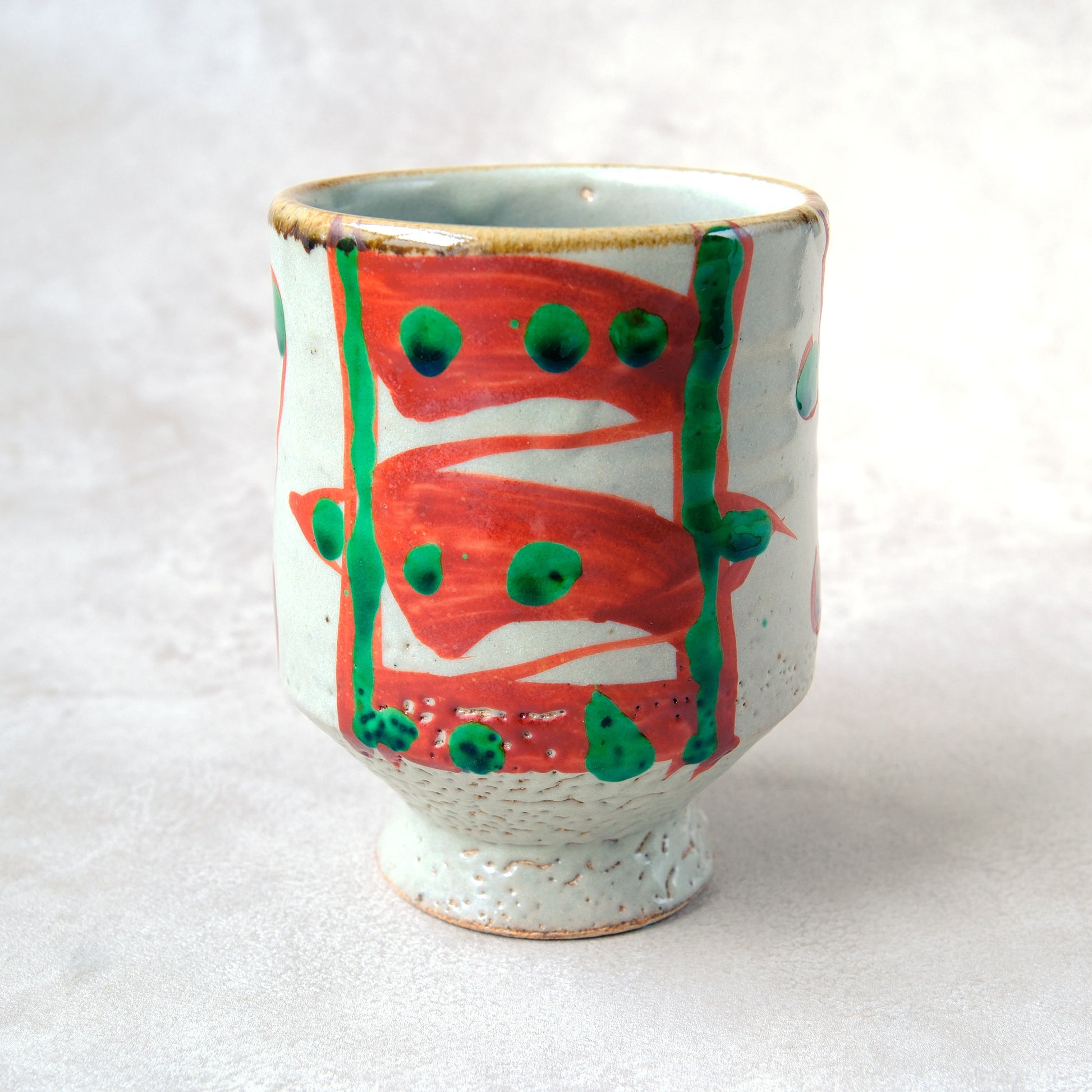 益子の陶芸家・松原直之さんによる、鉄絵と赤絵の湯呑。(1点物)