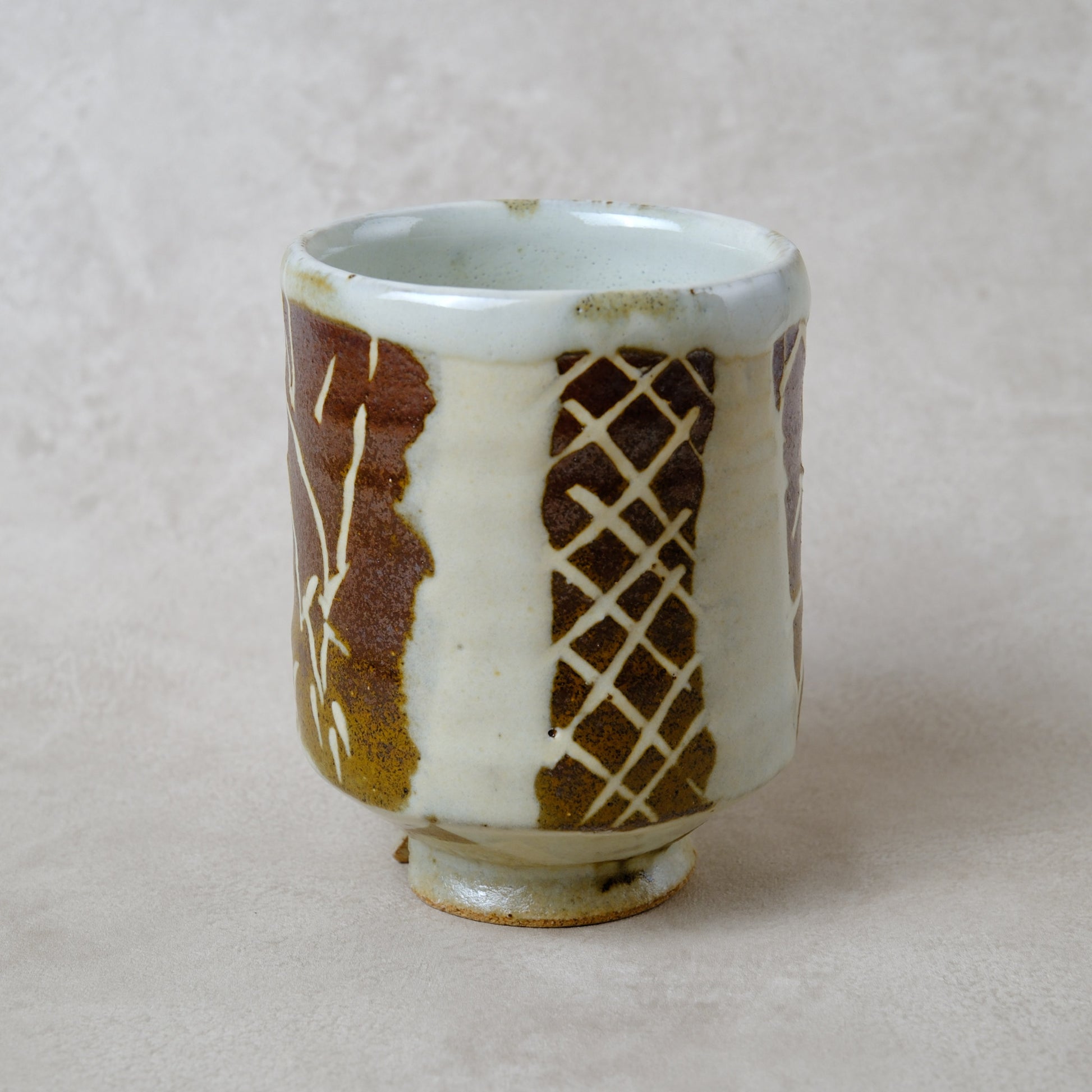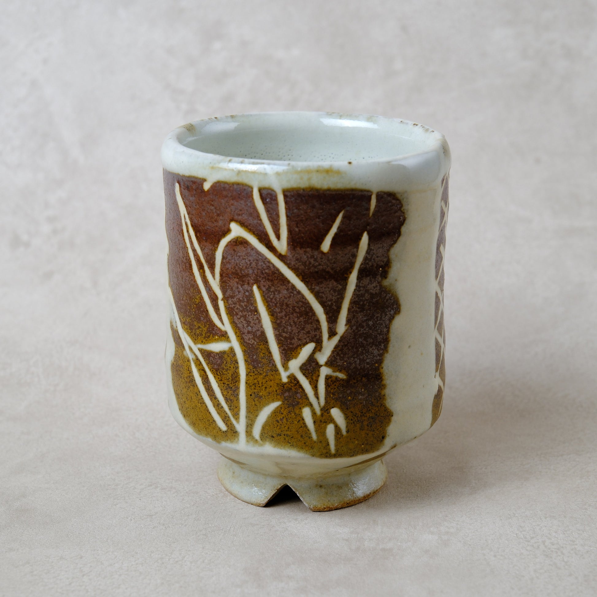 益子の陶芸家・松原直之さんによる、鉄砂絵の湯呑。(1点物)