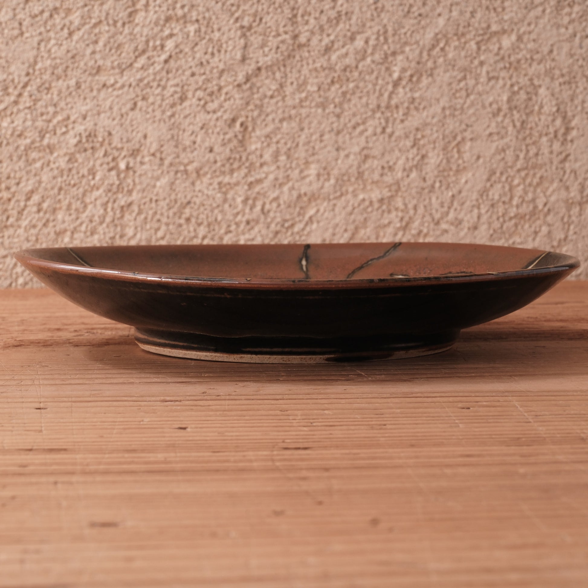[ 村澤 享 ] 柿釉抜絵7寸・中皿③ - 益子焼