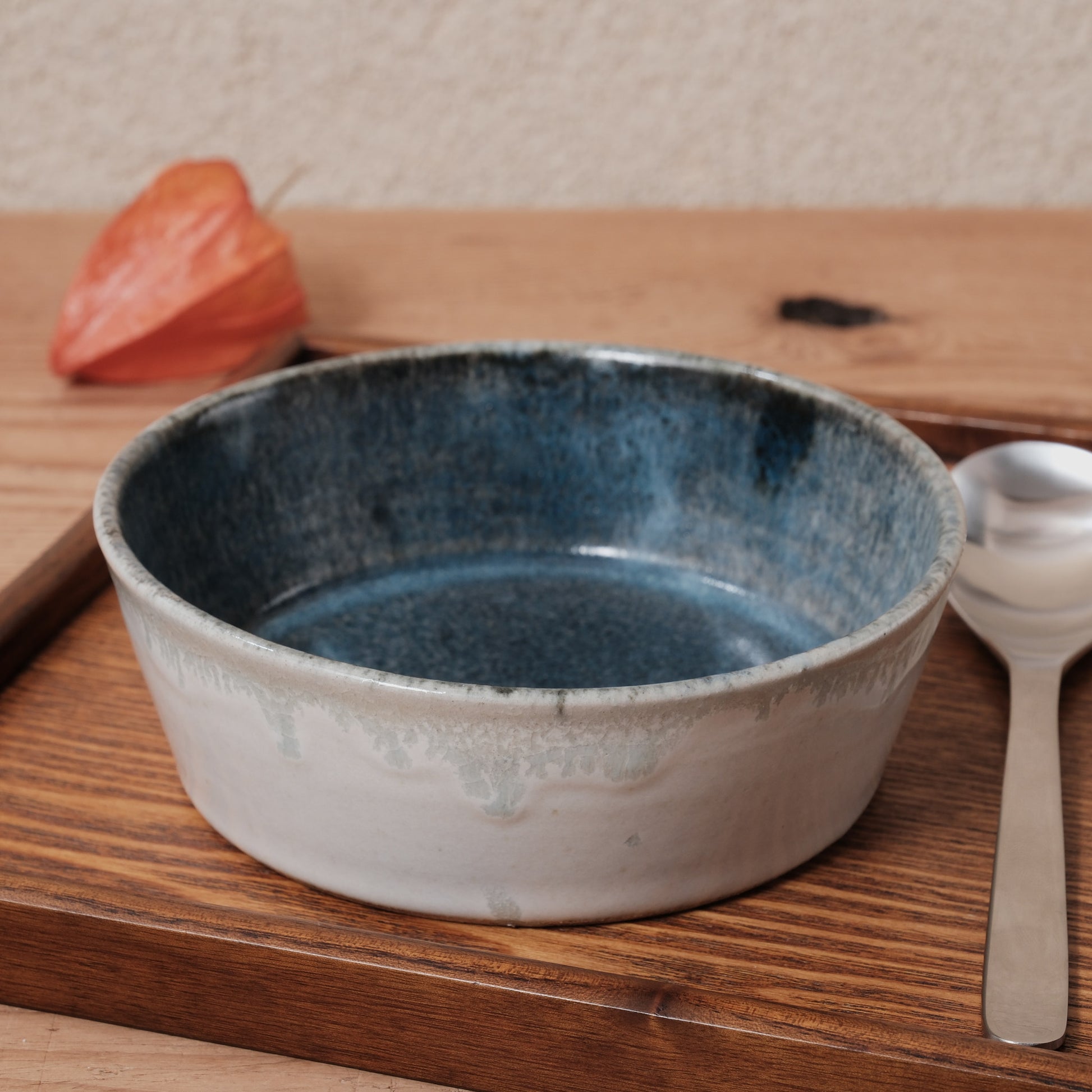 青みを帯びた灰釉の表情が美しい、5寸サイズの中鉢です。