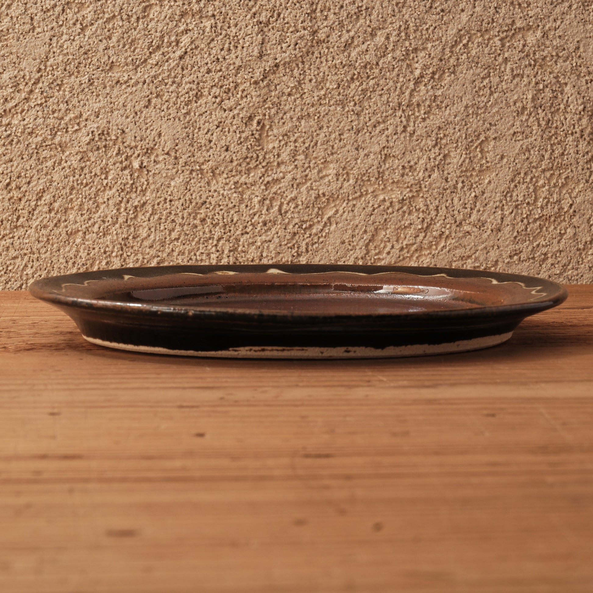 [ 村澤 享 ] 波縁取り7寸・中皿 柿黒釉 - 益子焼