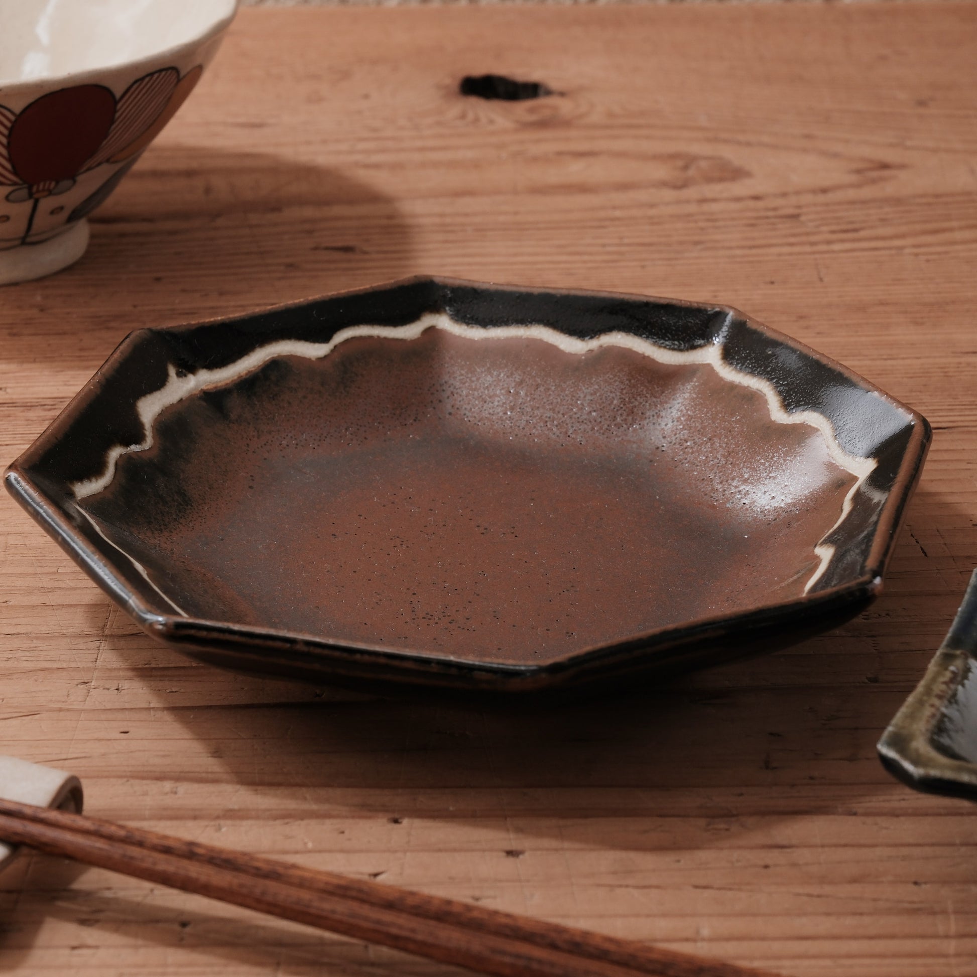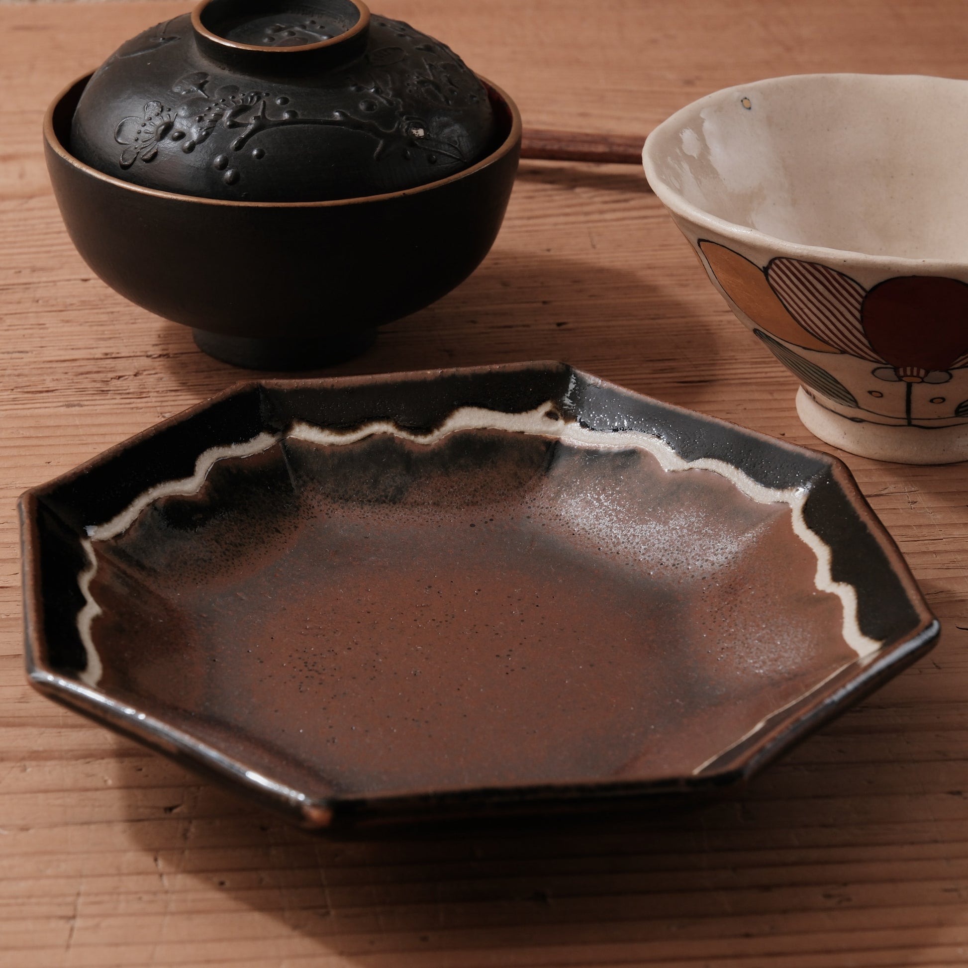 - 柿釉と黒釉の美しいコントラスト