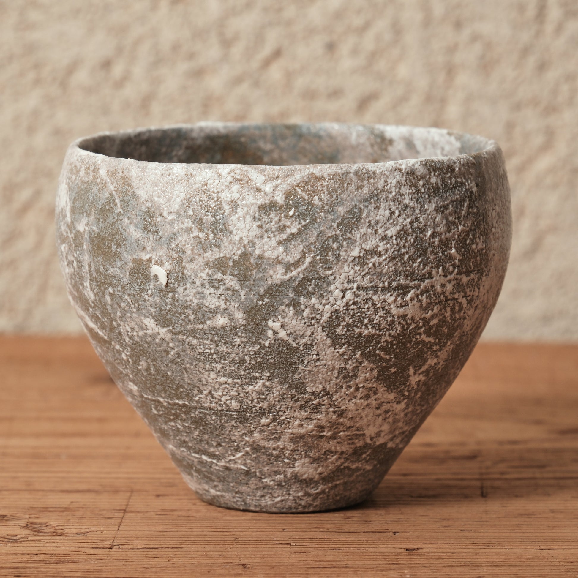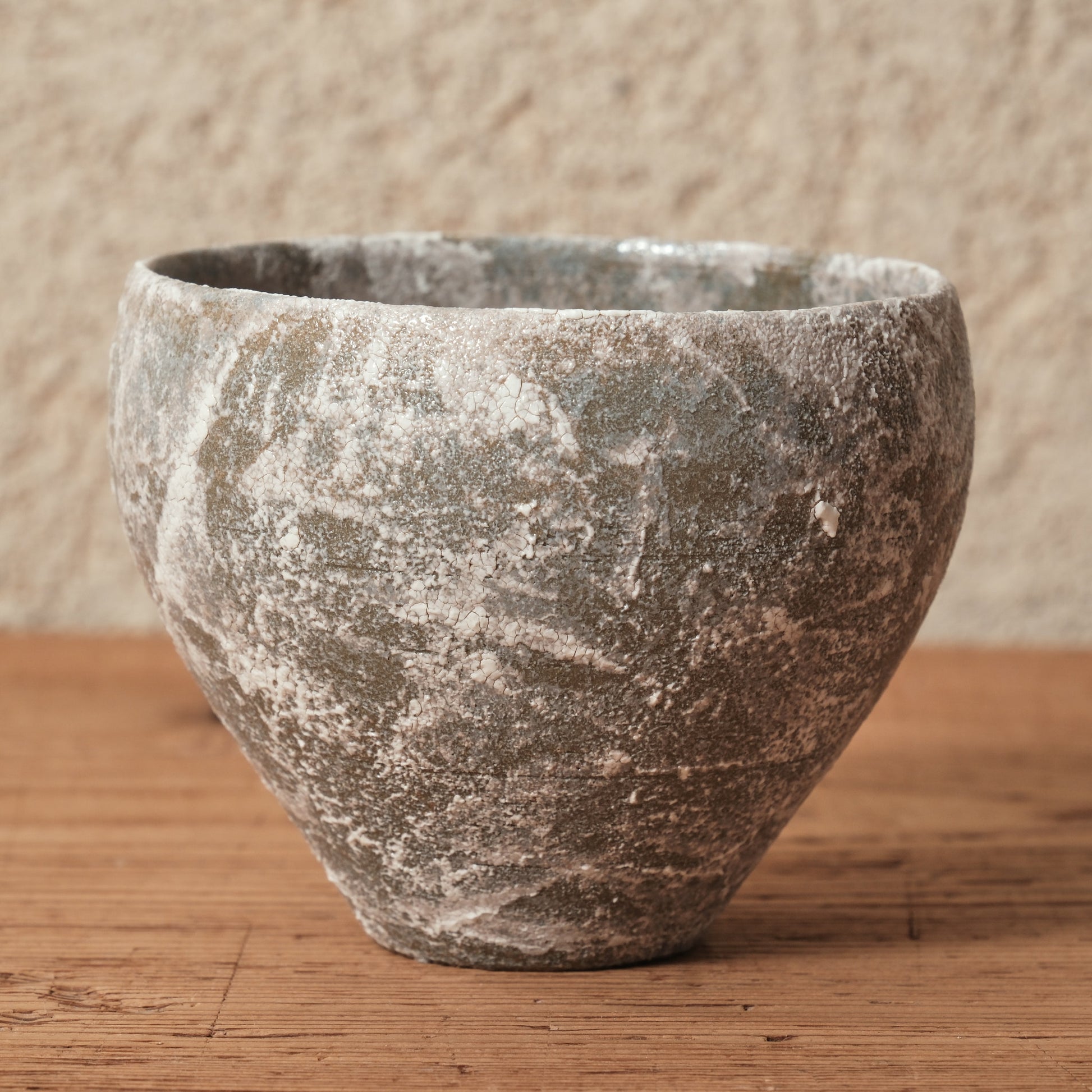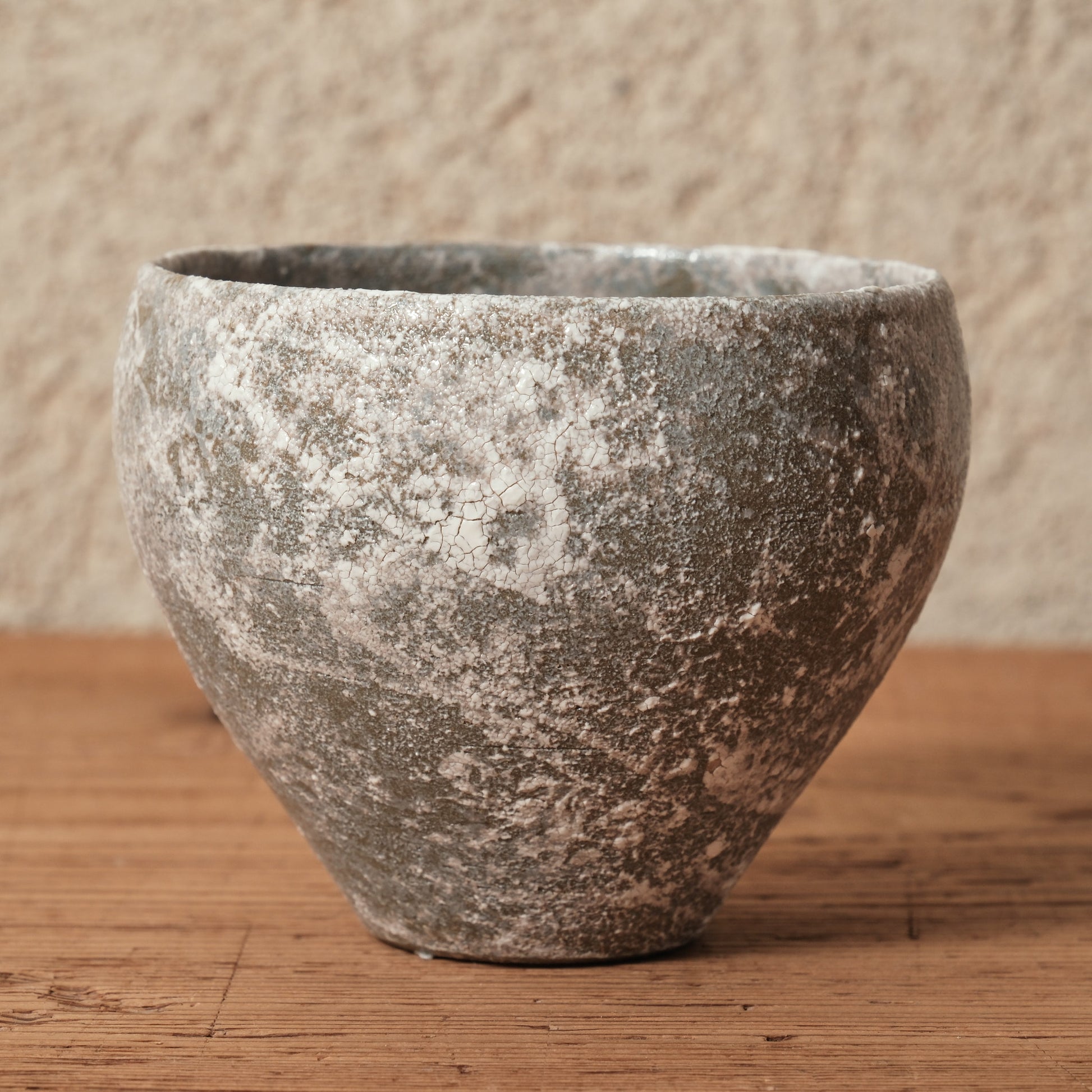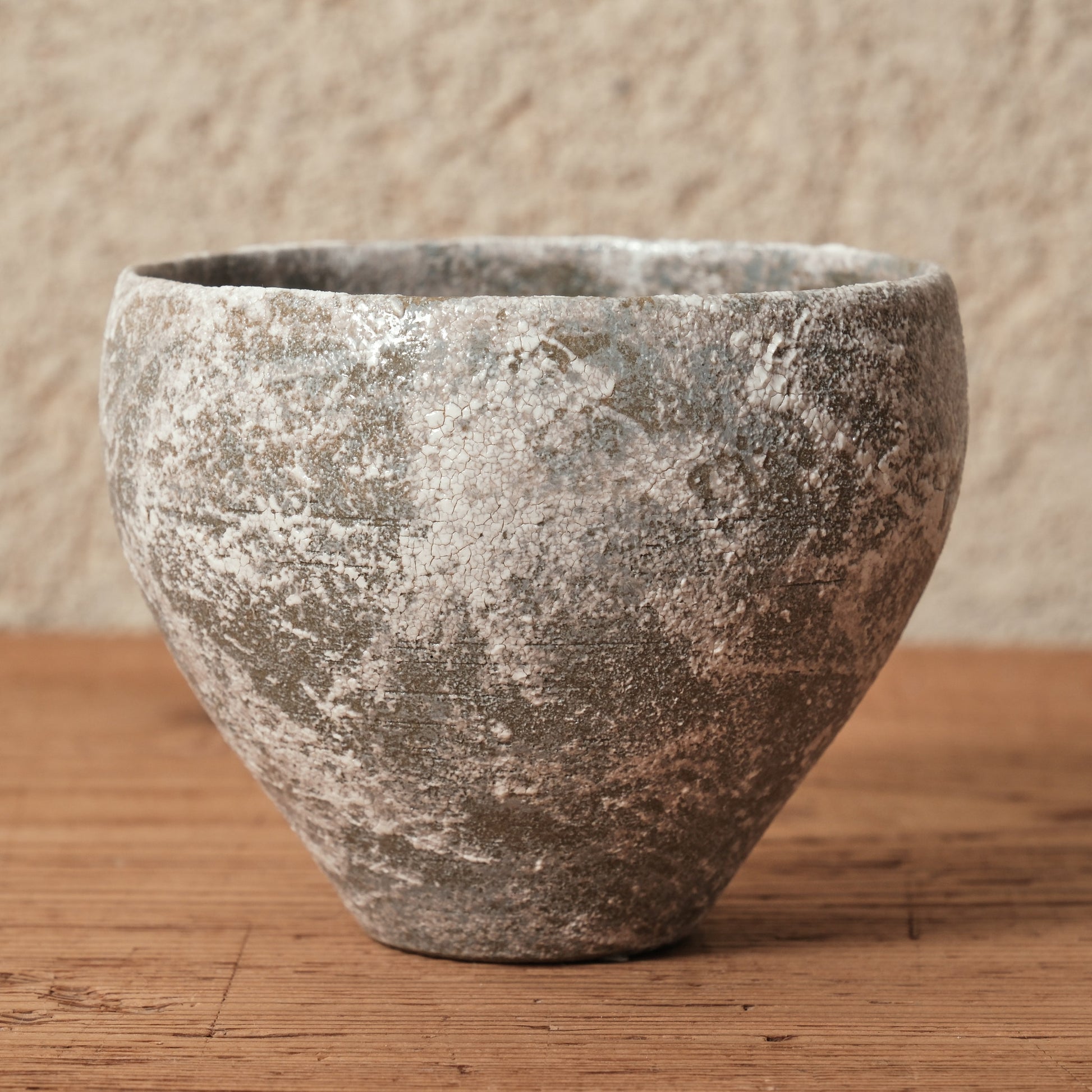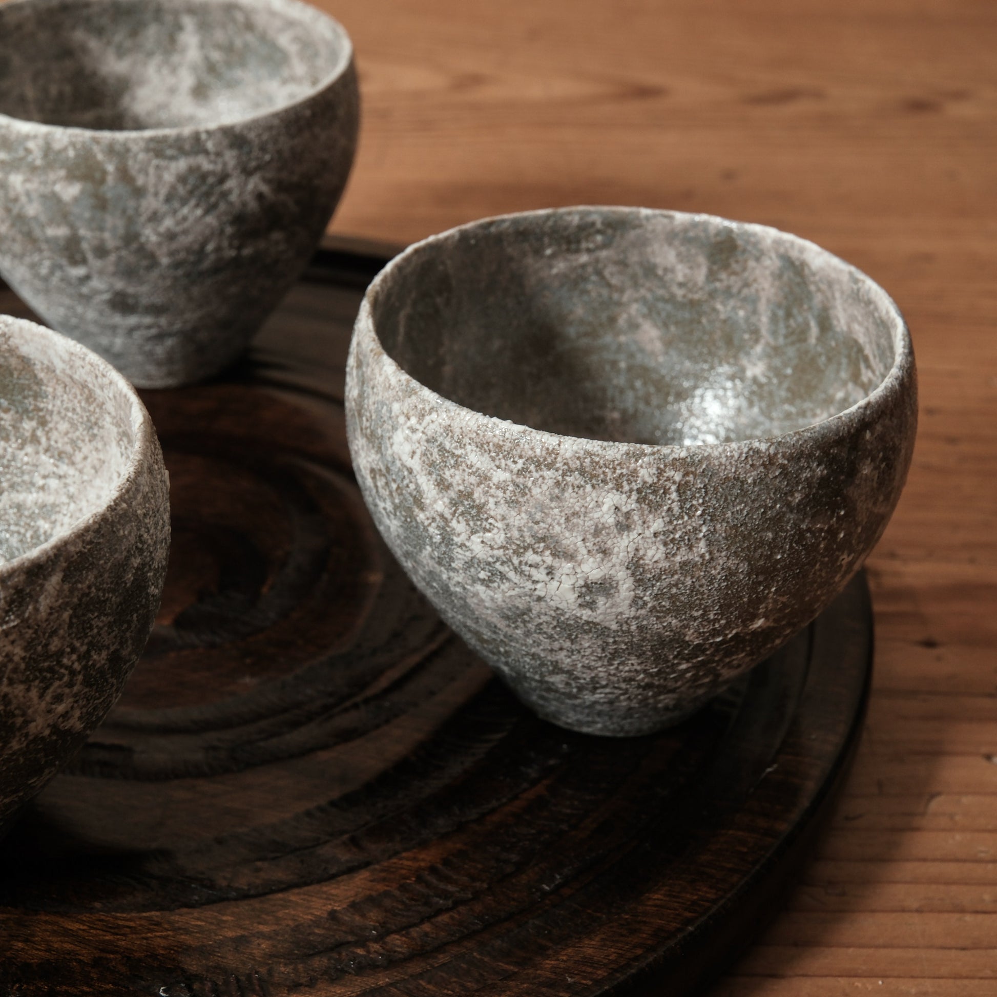 ランダムに施された白化粧が独特な揺らぎを生む、Emuiさんの「霞石~KASUMIISHI~」シリーズ。
