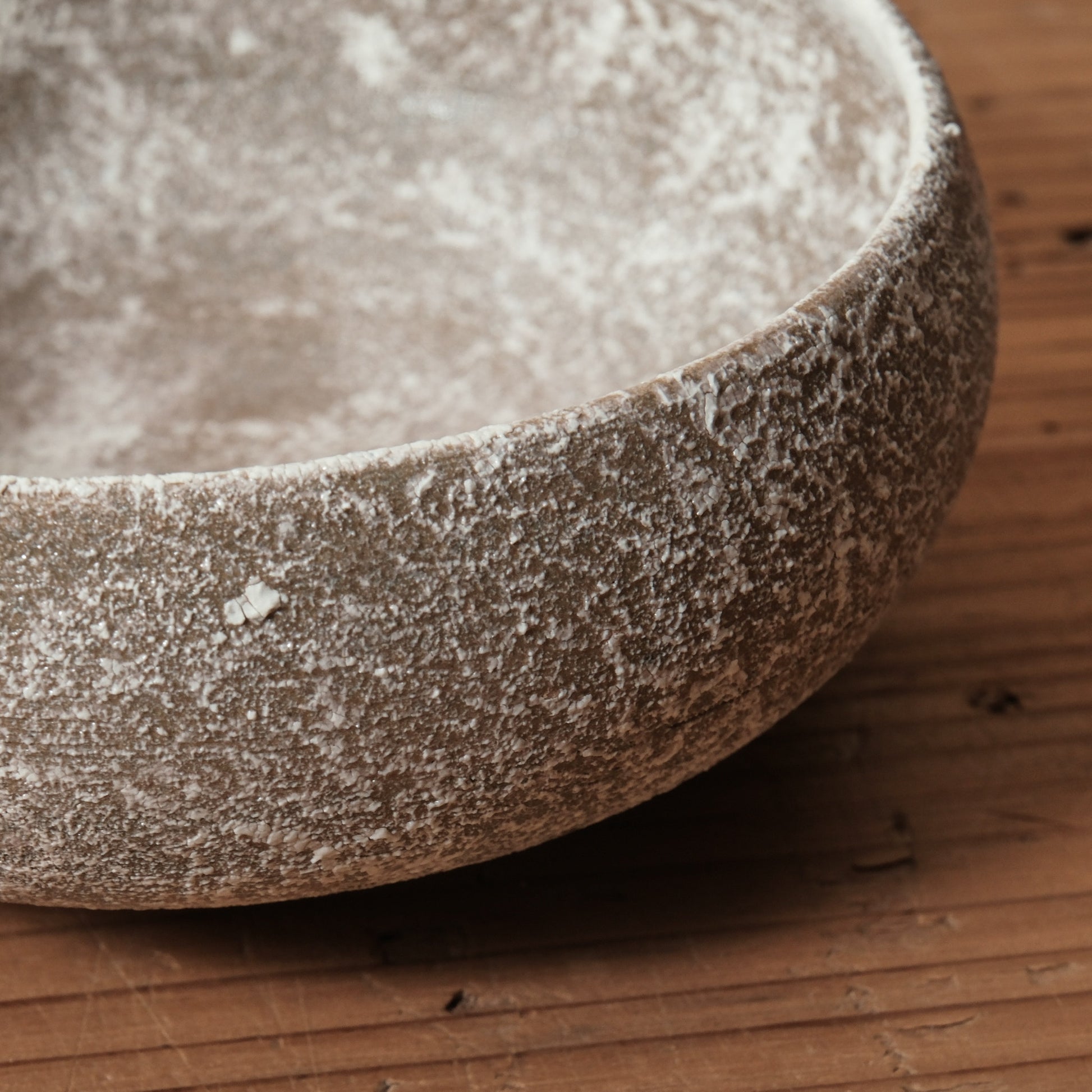 ランダムに施された白化粧が独特な揺らぎを生む、Emuiさんの「霞石~KASUMIISHI~」シリーズ。