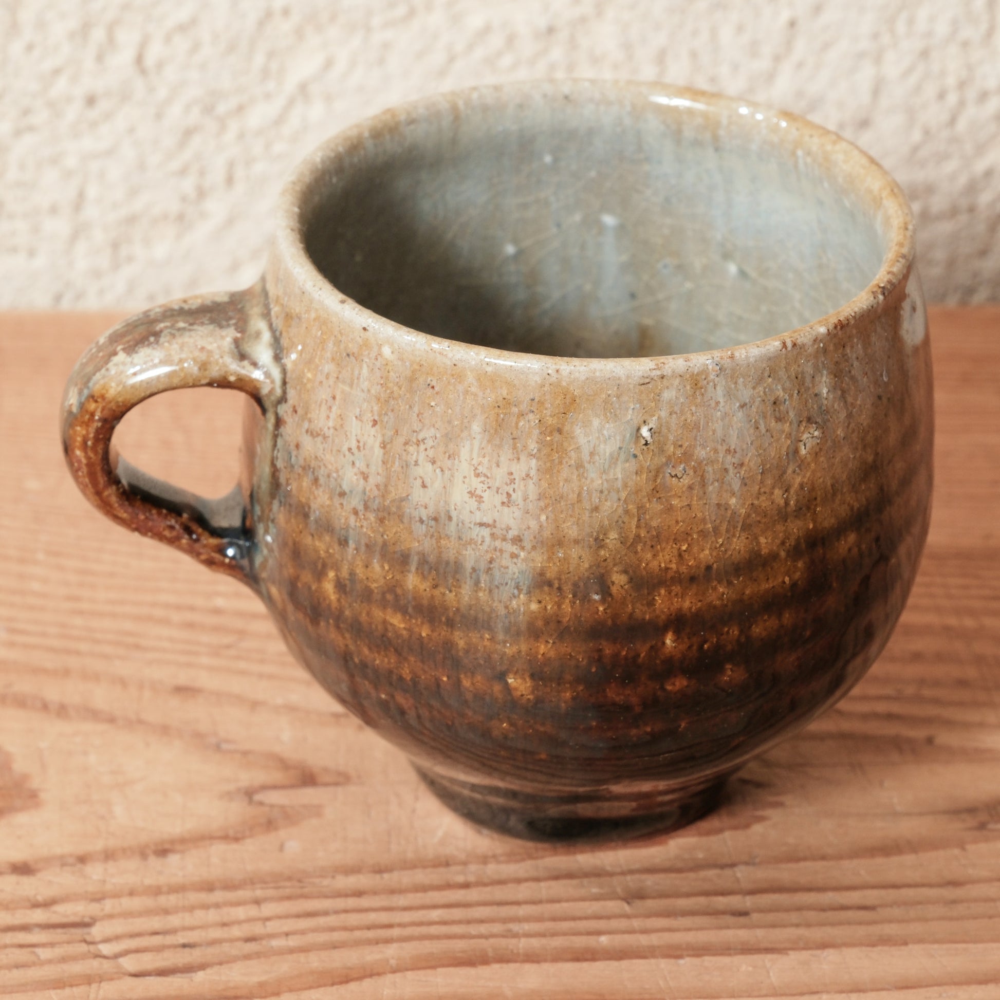 あたたかみのある飴釉が、ふっくらとした丸いかたちにしっとりと馴染んだマグカップです。