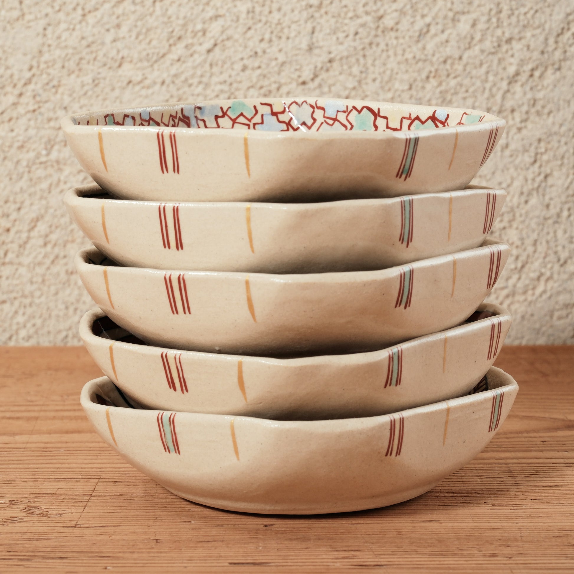 形状が同じでも模様や色使いがそれぞれ異なるのも、「決めすぎない、縛りすぎない」加藤さんの作陶スタイルだからこそ。